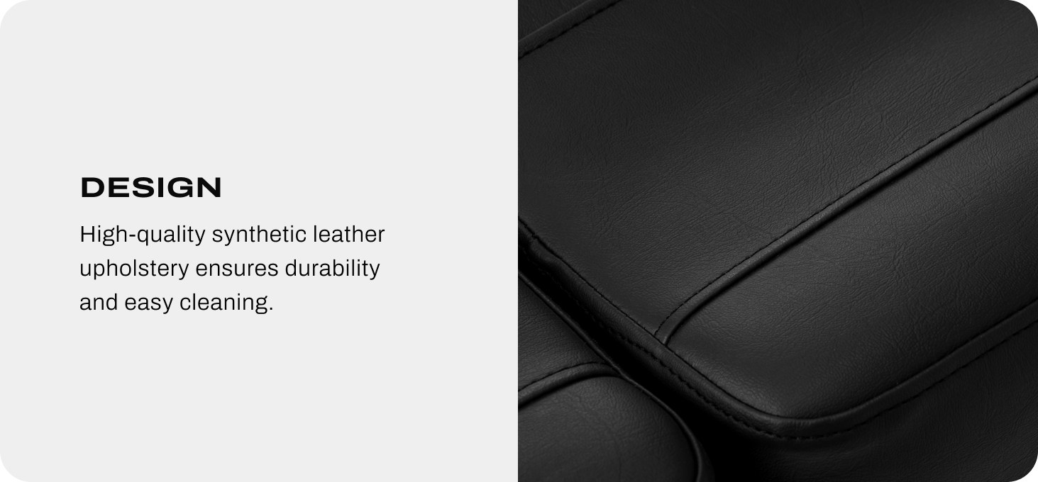 The minimalist form and classic colours make the chair a perfect fit for the aesthetics of tattoo studios, while supporting smooth work organisation. The ergonomic shape and deformation-resistant foam ensure a comfortable position during the session – both for the person being tattooed and the artist. The high-quality synthetic leather upholstery in shades of black, combined with a stable base, translates into durability, comfort of use and ease of cleaning. The well-thought-out design allows for flexible adjustment to individual needs, and the wheels located in one part of the base make it easy to move the chair around.